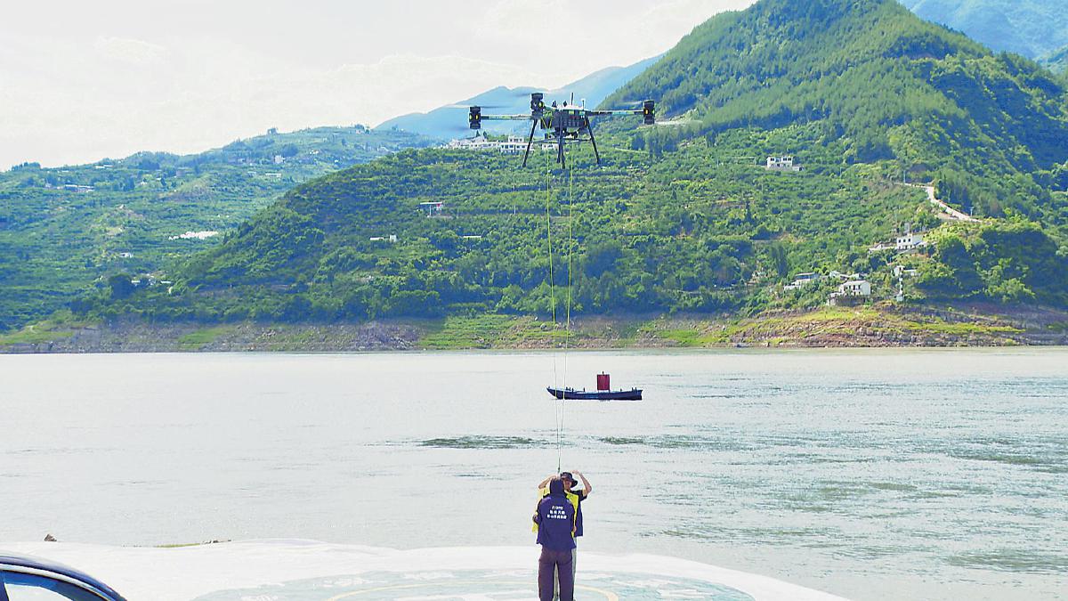 无人机跨江转运,让巫山脆李快速下山进城。 □王光平 摄