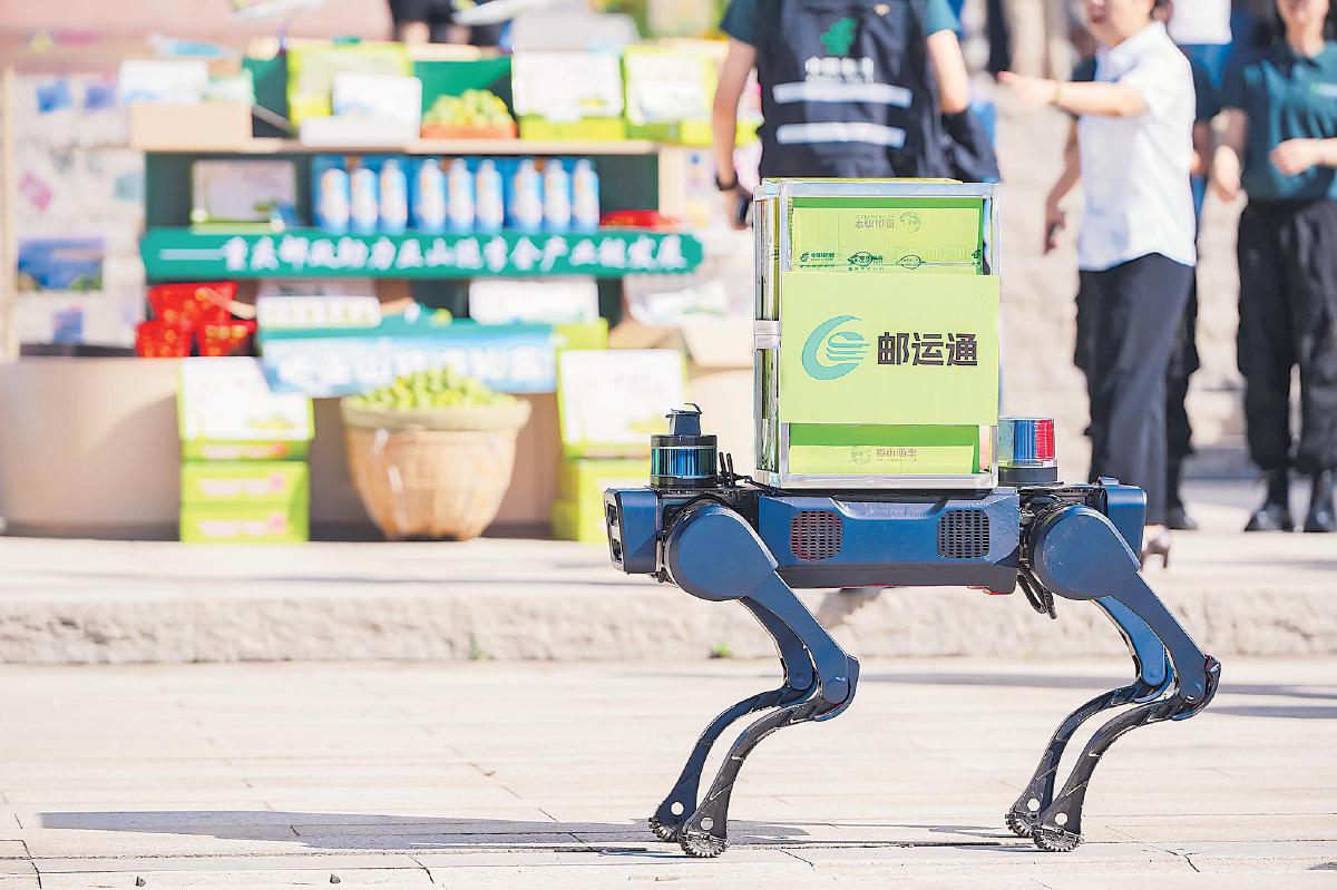 为大力提升物流速度,重庆邮政与云深处科技公司合作,今年首创“巫山脆李机器狗运输编组”,使用“绝影X20”机器狗,创新打造智能仿生运输智慧应用场景,解决坡地果园运输难题,实现“田间果园—邮政寄递点”的无缝衔接。相对于传统的肩挑手提,机器狗运输编组以全地形通行能力、集群智能调度和绿色长效作业三大优势,重构坡地果园物流链路,运输效率提升3倍以上,人力成本压缩近30%。