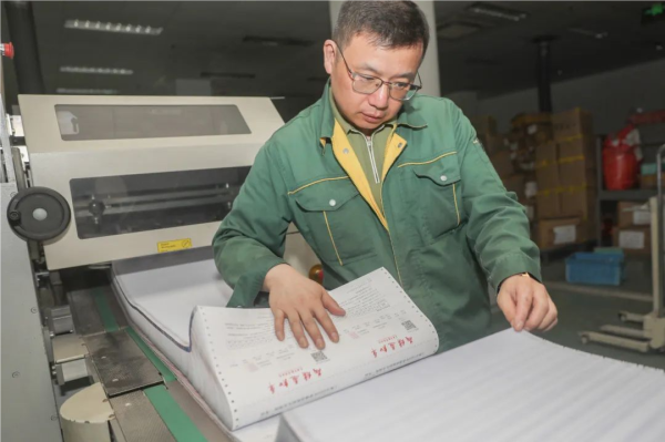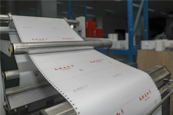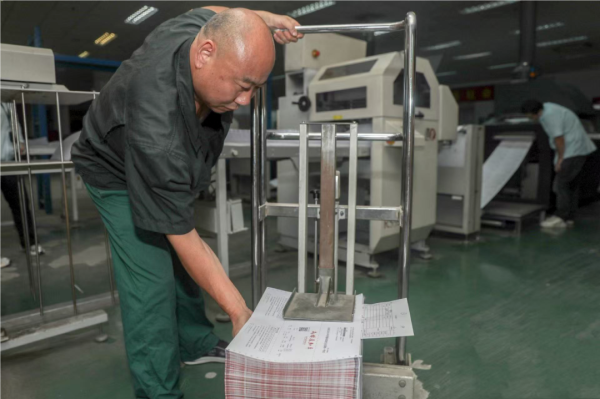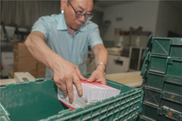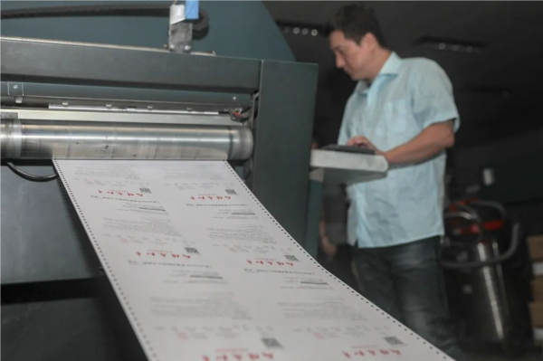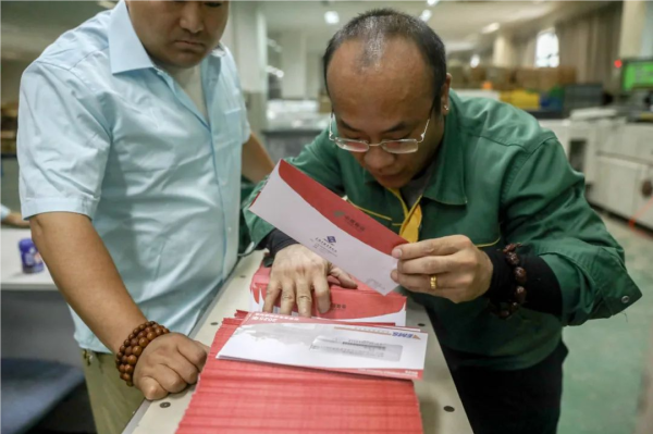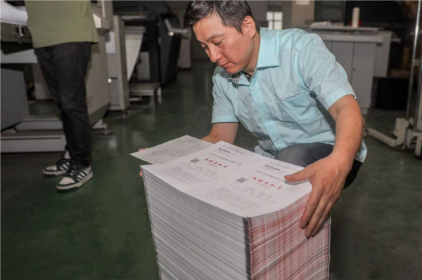 在现场看到,2台高速打印机以每小时2万件的速度进行打印,预计全部完成打印需要3小时,在经过打印、封装后,一封封承载着考生梦想的高考成绩单制作完成。