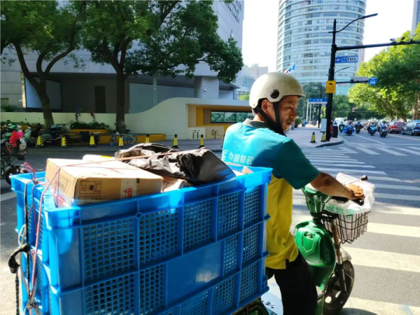 (青浦邮政投递员虽大汗淋漓,仍坚守岗位,确保将信件、包裹准时送达)