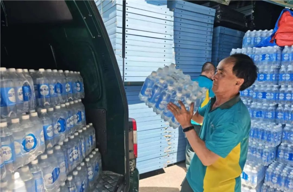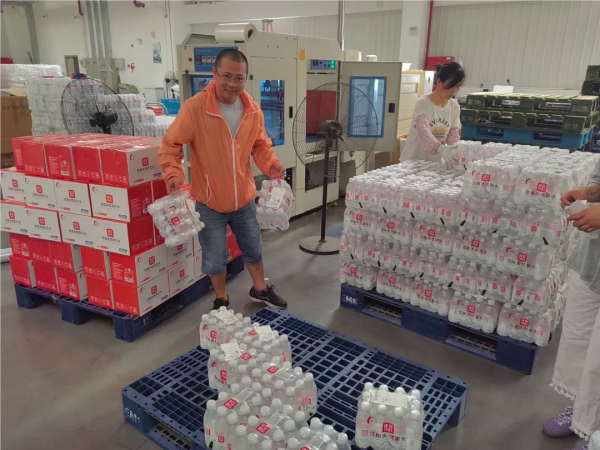 (连日的高温使得饮料寄递量攀升,物流业务分公司工作人员在仓库内准备发货)