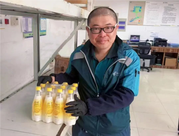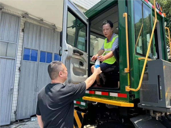 (国际业务分公司一线工作人员结束作业后领取盐汽水)