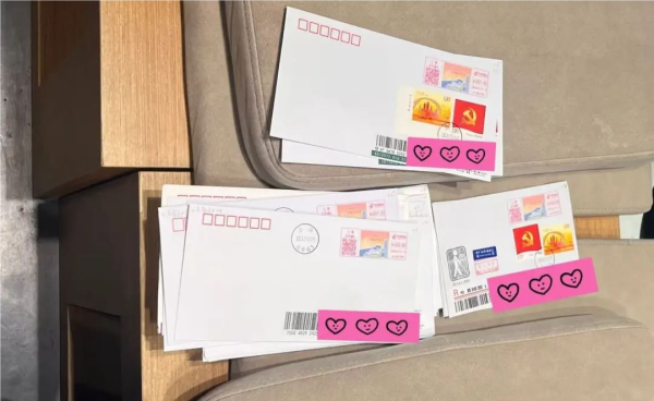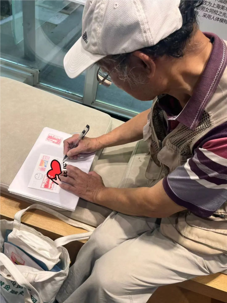 7月1日,北外滩滨江驿站内已聚集了很多慕名而来打卡的游客,他们热情高涨,拿出已经写好的明信片和信封,等待活动正式开始。小编从现场获悉,收件人有寄往国内、港澳台、更有国际的地址。书信传递间好一幅生动的海内存知己,天涯若比邻的景象。