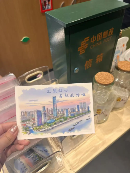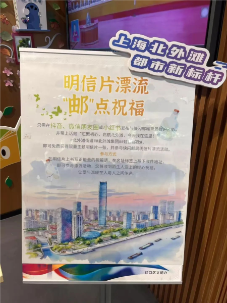 同时结合主题邮局快闪活动,推出“邮”点祝福明信片漂流活动,吸引周边白领、游客纷纷热情参与,通过活动限定明信片寄语北外滩、寄语祖国、寄语未来,让爱与温暖在人与人之间传递。