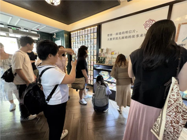 “这个绿色场景太出片了!邮局的复古基调与初音未来的未来感完美融合,仿佛走进她的音乐世界!”一位专程从外地赶来的粉丝兴奋地表示。据了解,活动期间超半数顾客为初音未来而来,不少人打卡邮局后,又前往武康大楼外墙合影,形成“二次元+地标”的独特游览路线。