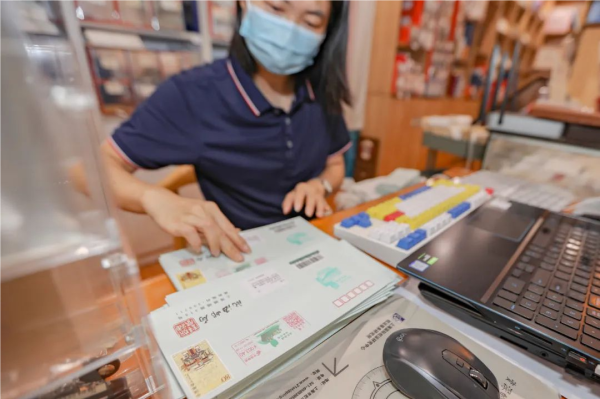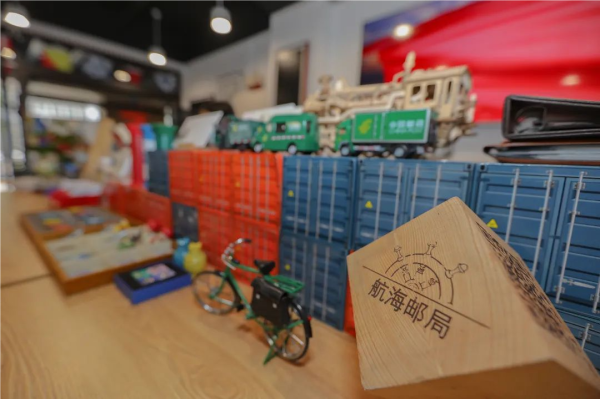 值得一提的是,航海邮局门前有全国唯一一只蓝白相间的落地邮筒,已成为集邮爱好者和市民游客们热衷的“网红打卡地”。走进邮局大门,最吸引人的是各种各样的邮品与文创周边。为了推广航运文化, 航海邮局开发了一系列相关主题的邮品,让邮迷既能从中了解航海知识与航运文化,更能满足收藏欲。