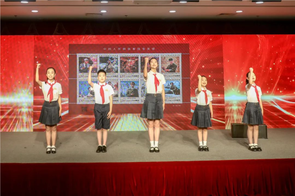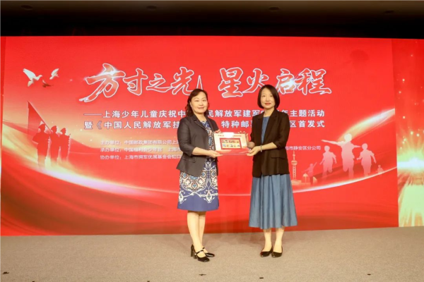今天(8月1日)上午9时45分,上海市邮政分公司联合中福会少年宫、虹口区退役军人事务局共同举办“方寸之光 星火启程——上海少年儿童庆祝中国人民解放军建军98周年主题活动暨《中国人民解放军挂像英模》特种邮票上海地区首发式活动”,通过邮票这一国家名片的特殊文化载体,向为国家和人民作出卓越贡献的英模人物致敬,推动红色文化传承与国防教育深度融合。