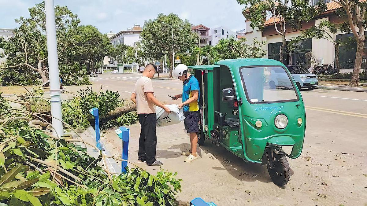 此外,三亚市分公司积极投身保大局工作。在做好邮政服务的同时,党员突击队下沉朝阳社区,参与道路清障、垃圾清运等工作。“邮政人不仅保障邮件投递,更参与城市修复,这份担当让人敬佩!”社区工作人员赞叹道。