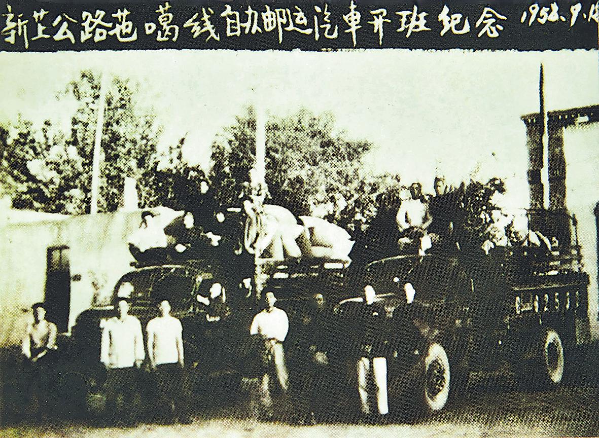 邮车行驶在蜿蜒的喀喇昆仑山路上。
