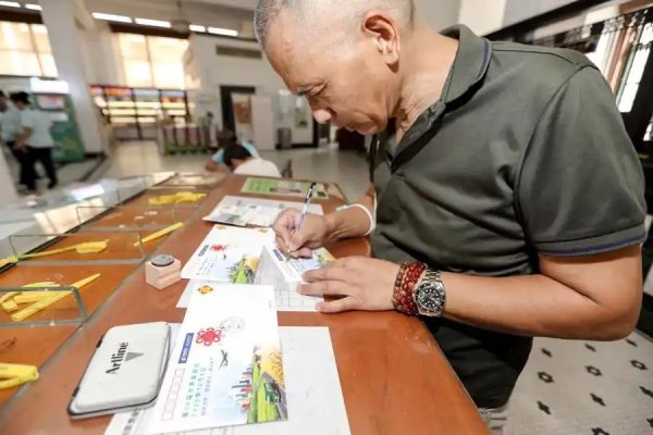最受瞩目的环节,莫过于第56届世界邮政日纪念封的首发。纪念封刚一亮相,便吸引了大批市民驻足围观,大家自觉排成整齐的队伍,有序等待领取;拿到纪念封后,又纷纷走向纪念邮戳区,小心翼翼地为封片盖上专属印记,每一个动作都透着对集邮的珍视。