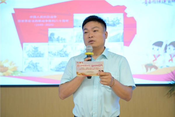 肖塘邮政支局网点主任顾凯化身“邮票讲师”,以本月中国邮政刚刚发行的《中国人民抗日战争暨世界反法西斯战争胜利八十周年》纪念邮票为核心切入点,开启了一堂生动的历史与爱国教育课。课堂上,顾凯结合“台儿庄战役”“地道战”等邮票背后波澜壮阔的真实历史事件,用通俗易懂的语言,清晰阐释了中国共产党在全民族抗战中发挥的中流砥柱作用,深情讲述了党领导中国人民历经艰难险阻、实现民族独立和解放的伟大历程。一枚枚小小的邮票,仿佛成为穿越时空的“信使”,将红色基因与伟大抗战精神的深刻内涵传递给在场每一位青少年,引导他们传承红色血脉,树立远大理想,争当新时代有担当的“接班人”与敢闯敢拼的“弄潮儿”。