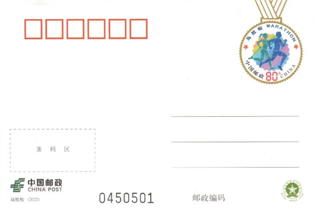 马拉松专属邮资图纪念明信片,书写赛事历程,寄送亲朋好友表达美好祝福;