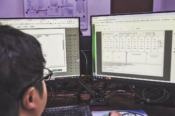 18日10:20,安检员对国际邮货的过检图像进行判别。
