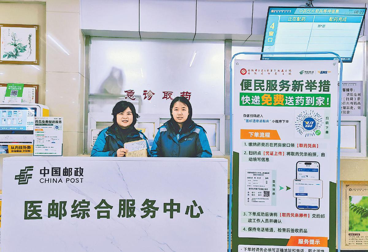 一剂中药从“智慧共享中药房”煎煮完成,经“中国邮政医邮平台”(以下简称医邮平台)绿色通道调度,次日即可送达偏远山村患者手中;一份免费药具在线申领后,依托平台隐私管控机制,享受“隐私包装+专人配送”上门服务……如今,这类便捷医疗寄递场景已成为安徽“互联网+医疗健康”服务常态。