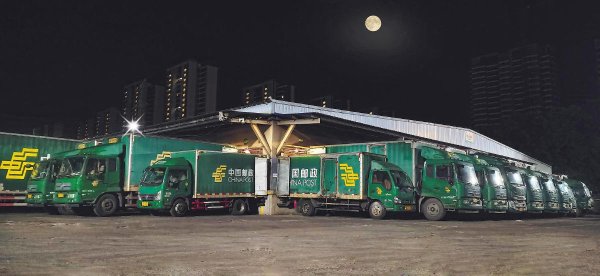 1月19日凌晨,圆月悬在江苏常州邮件处理中心的夜空,一排邮车即将奔赴四面八方,把一份份带着月色的牵挂准时送到千家万户。 □吴敏 摄