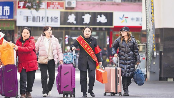 2月10日,四川省广元市邮政分公司志愿者暖心护航,助力老乡平安返乡。 □张平 摄
