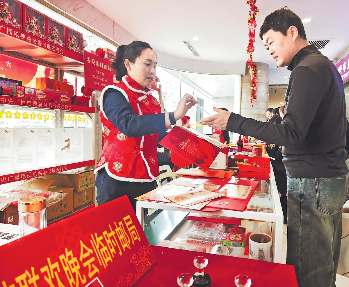 2月7日,春晚临时邮局在北京梅地亚中心正式启动服务。今年的春晚临时邮局在装饰布置和产品供应上不仅延续往年经典,更融入2026年生肖马元素,推出生肖主题邮票珍藏册、总台春晚文创纪念品等150余款产品,其中《从2026年中央广播电视总台春节联欢晚会寄出的美好祝福》邮资纪念封一亮相便成为“爆款”。一位顾客表示:“今年是我第三年来春晚临时邮局买这套‘春晚寄福’纪念封了,从春晚现场寄出特别有纪念意义。”据悉,春晚临时邮局已安排好除夕当天全员在岗,方便市民来此寄出祝福、盖章留念。