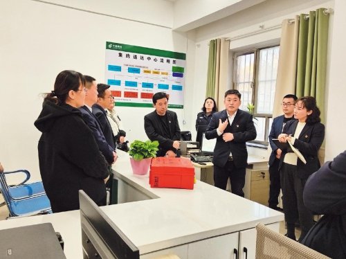 甘淼(右三)在轮台县人民法院“法邮深化合作现场会”上介绍集约送达及二审卷宗业务操作流程。 □汤潞 摄