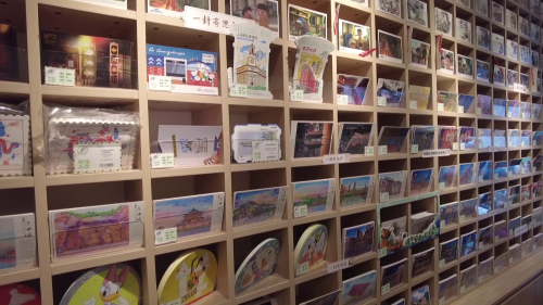在现场,焕新升级的豫园邮局吸引了不少市民游客。邮局一面墙上展示着有关上海地标、古典名著以及卡通为主题的三大系列的上百张各种明信片。