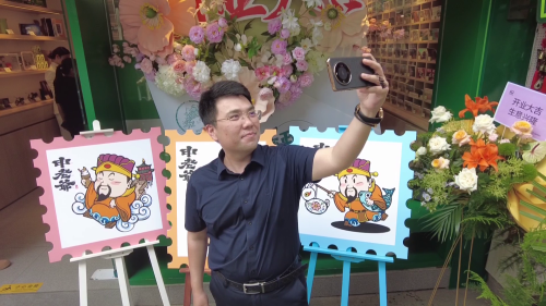 沈先生是一名旅游达人,每到一个地方就会打卡买些纪念物品,其中明信片是首选。沈先生看到焕新升级后的豫园邮局可以自己制作有声明信片,赶忙上前尝试。