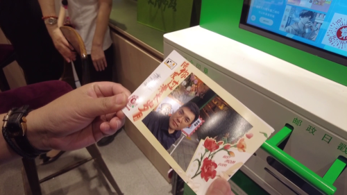 经过自己拍照,然后用手机扫描,按照提示,沈先生很快就制作出了精美而又极具个性化的有声明信片。用手机扫一扫,录在明信片上的声音就马上显示了出来。“我在豫园邮局等你。”很快,沈先生现场录制的一句话就已经被制作在明信片上了。沈先生只要用手机扫一扫,就能够还原他的这段话。“我每到一个地方就有一个寄明信片的习惯。今天到城隍庙,正好看到豫园邮局开业。这边的邮局非常有特色,还可以给我制作创意明信片,还是有声的,感觉很不错。这边还有漂亮的明信片墙,我感觉非常新颖,整体的环境也非常漂亮整洁,体验非常好”!沈先生难掩脸上的兴奋。