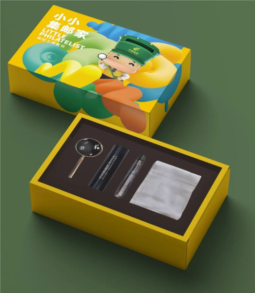 给未来收藏家的第一套工具礼盒。专业镊子×1|放大镜×1|紫光灯×1|齿孔尺×1|启蒙邮折×1(含2套儿童类邮票)。