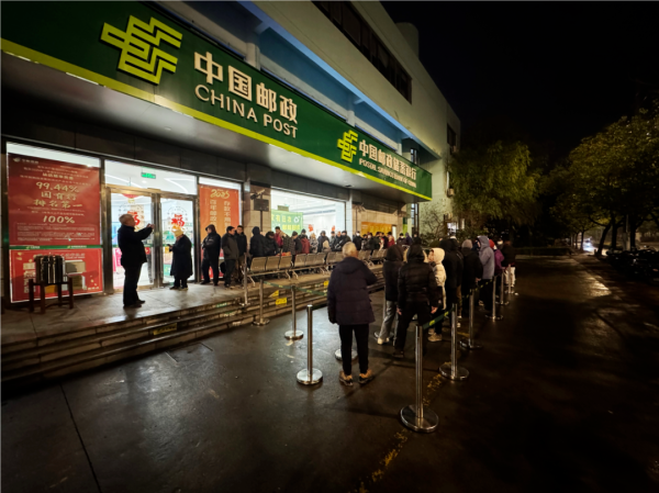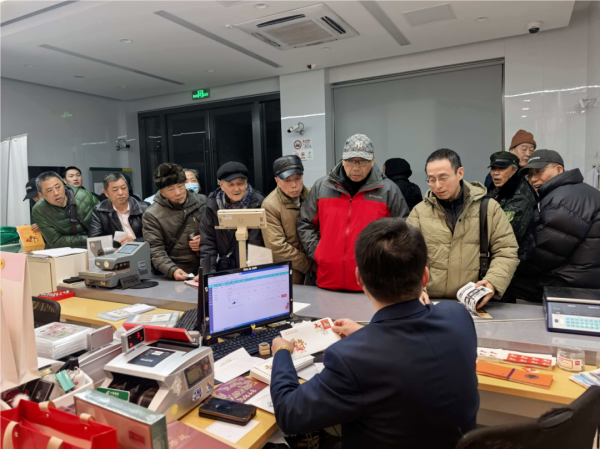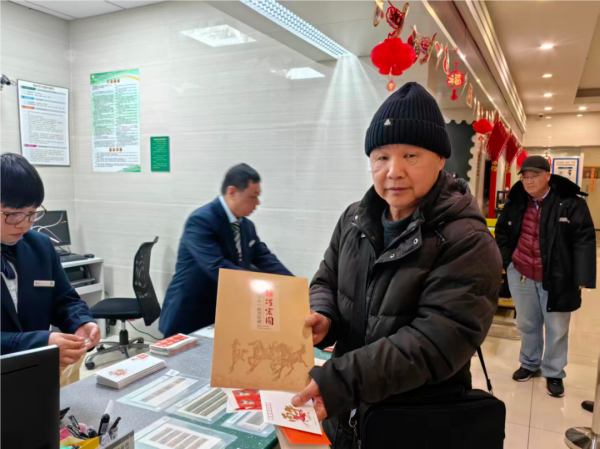 凌晨五点,夜色尚未褪去,位于黄浦区柳林路156号的龙门路邮政支局,营业大厅内早已是人头攒动。不少邮迷带着满心期待提前等候,只为抢先一睹马年生肖邮票的“真容”。“阿拉今朝天不亮就赶过来了,就想第一时间拿到这枚马年邮票!再盖上今天的专属日戳,把‘马到成功’的好彩头送给亲朋好友,祝他们新岁大发、万事顺意!” 面对镜头,邮迷魏老先生难掩兴奋,话语里满是对生肖邮票的钟爱。对这些资深邮迷而言,每年抢购生肖邮票早已不是简单的收藏行为,更成了刻在骨子里的年俗与惯性。小小一枚邮票,承载的不仅是对“方寸天地藏乾坤”的痴迷,更是老友们一年一度久别重逢的约定——借着集邮的契机,聊聊过往、话话新春,让这份跨越岁月的爱好,成为联结情谊的温暖纽带。