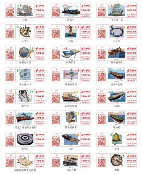 据了解,“二十四节气-航海篇”系列彩色邮资机戳自2026年2月4日起至2027年1月20日共发行24枚,每枚对应一个节气和航海元素,按春绿、夏红、秋橙、冬蓝,每季均有专属色系。机戳的戳面信息包含了中国邮政标识、邮资、时间、编号、地理机构信息,同时配有二维码和可视化唯一码,链接音频、视频故事,打造交互式、多场景的航运文化阅读体验。值得一提的是,发行此系列邮资机戳的上海航海邮局,是上海第19个“全国航海科普教育基地”。除了“航海篇”,航海邮局此前还曾发行了二十四节气“食物篇”“植物篇”和“上海外滩建筑群”系列,通过邮资符志传播中华文化影响力,提升航运文化软实力。